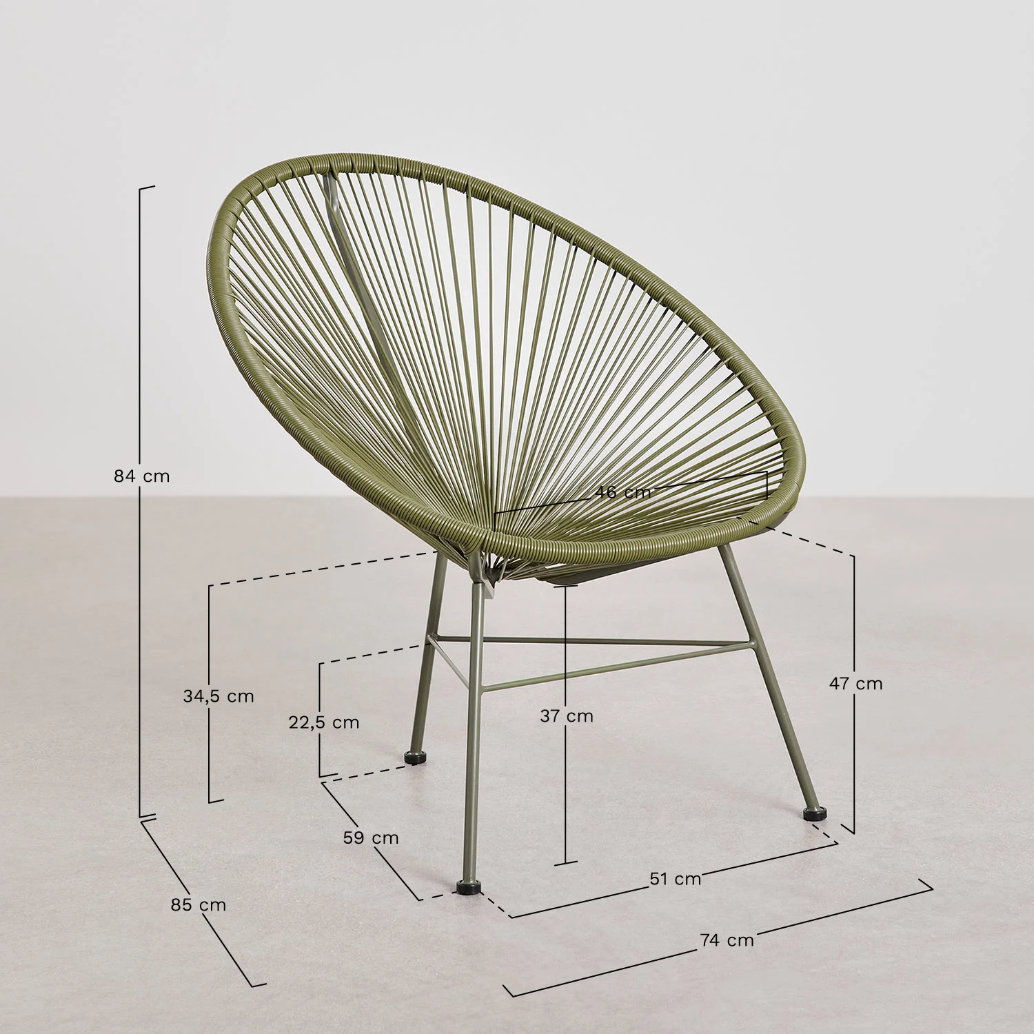 We always talk about armchairs as mandatory furniture in the living room, but what if we change this way of thinking and incorporate them in the halls or in the bedrooms? The New Acapulco Steel and Synthetic Wicker Armchair will change the way you see the world. The structure and legs are made of steel , ensuring durability and stability. In addition, they have a powder paint treatment that gives them resistance. To protect your floors, its legs include PVC pads , helping you to move the armchair without worries. The seat is made of braided synthetic wicker , creating a pattern that not only has an attractive visual touch, but also provides incredible comfort . Acapulco will be your essential ally with which to embrace decorative trends that are very different from the conventional ones.For proper maintenance, we recommend cleaning it with a damp cloth, avoiding the use of chemical products.
